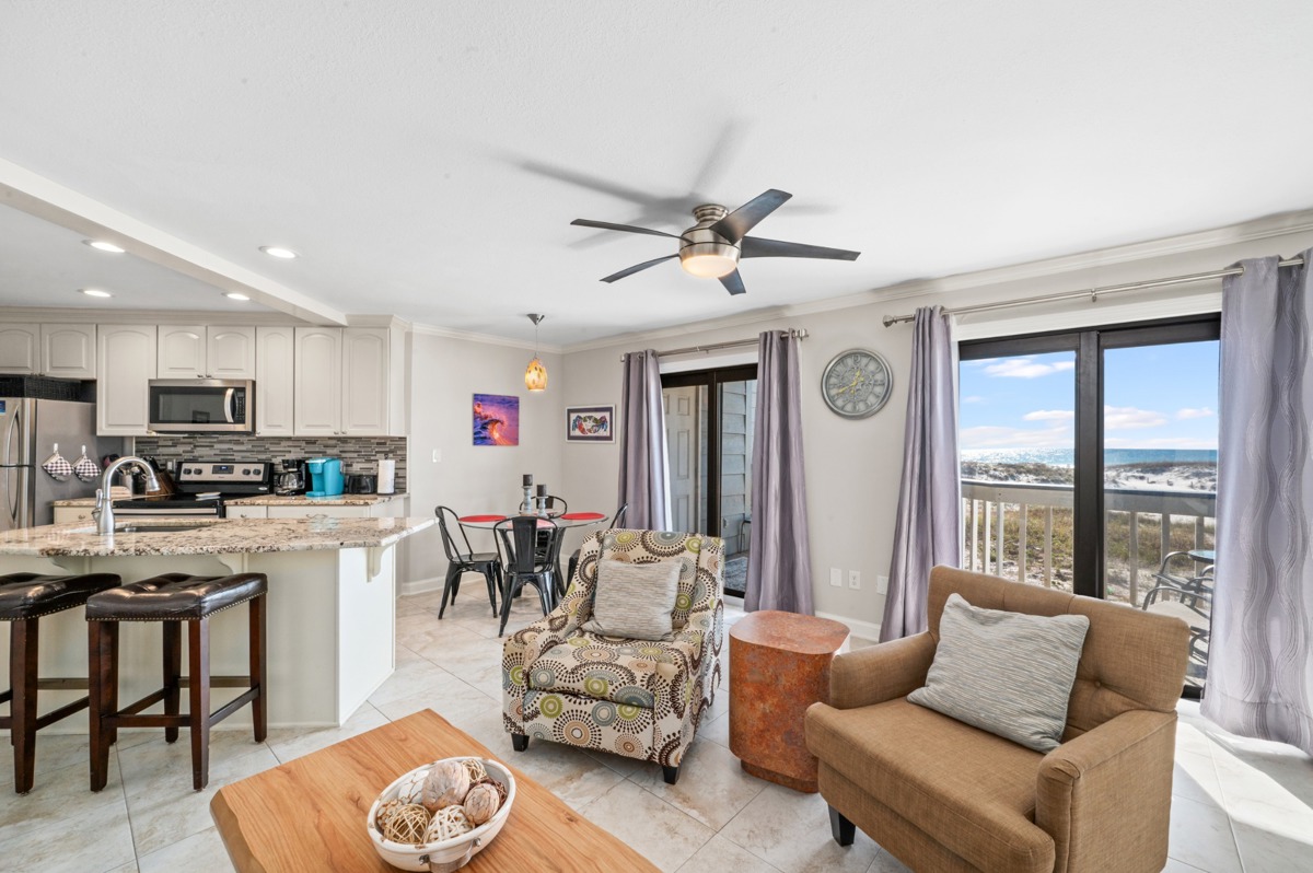 You have found the perfect condo. Everything was in great condition and it was super clean. The kitchen has everything you need. The beds and bedding are super comfy. The master bedroom has a huge bathroom with w large walk in shower. Everything has been updated. The condo is decorated so nicely with great artwork on the walls. The view alone would be worth the price. There is a large deck with a gorgeous Gulf view. We saw dolphins swimming and enjoyed people watching. The Hangout is near so you can hear their music but only when outside. Nice and quiet inside. The location is right in the action. Pool was sparkling clean. I could go on and on. We were very impressed and had an awesome week at the beach. Randy is a super nice and responsive owner.