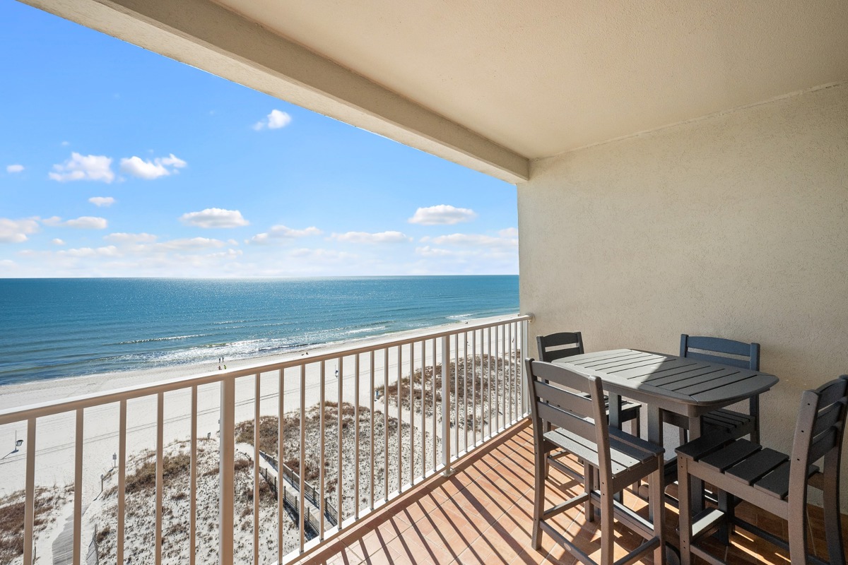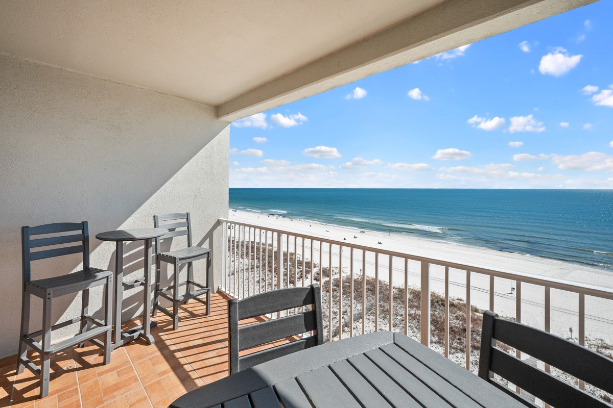Have you spent a moment picturing yourself sitting on a balcony and staring at the ocean and beach right in front of you? Straight on. Gulf front. Nothing in the way. Our condo is on the 8th floor which is the top floor here at Tropic Isles. Because the ocean and beach seem so huge it just doesn’t feel all that high up. You will love it out here.